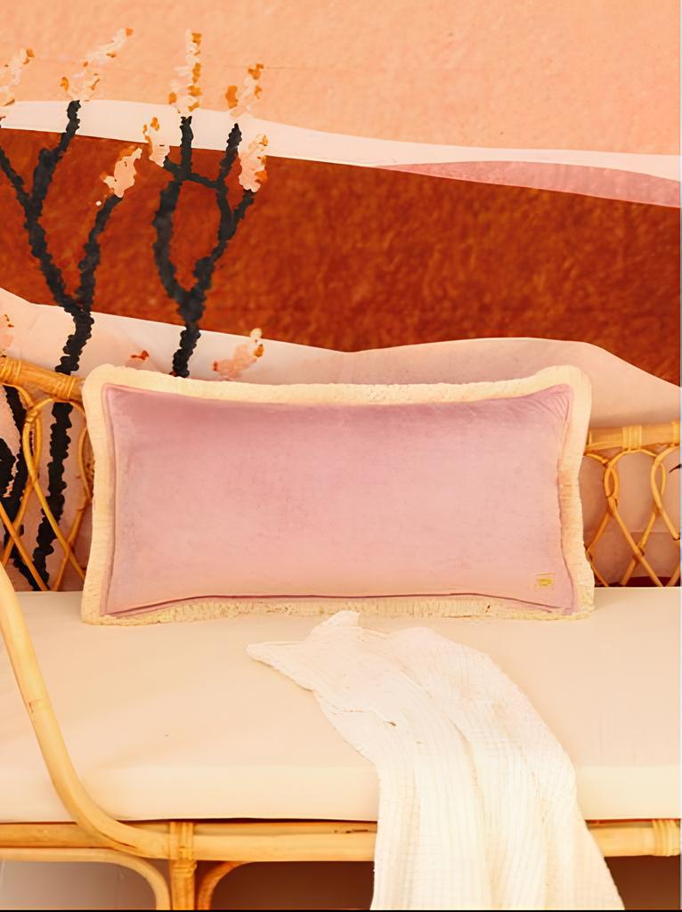 Dit roze fluwelen sierkussen van Moi Mili voelt heerlijk zacht aan en brengt direct een cozy sfeer in huis. De franjes maken het kussen helemaal af en zorgen voor een gezellig accent op je bank, stoel of bed.